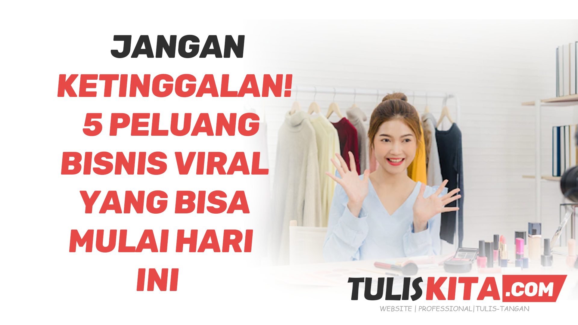 TULISKITA.COM – Temukan 5 peluang bisnis viral yang menguntungkan dan bisa dimulai hari ini! Panduan lengkap dengan modal minim untuk pemula yang ingin sukses berbisnis online.